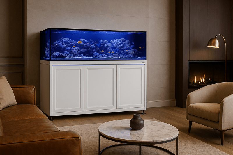 - ✔️ Full reef system out of the box — sump, cabinet, plumbing